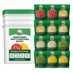 Our Freeze-Dried Fruit & Vegetable Bucket contains 6 pouches of freeze-dried fruit and 6 bags of freeze-dried vegetables, featuring our most popular produce. These fruits and vegetables were...