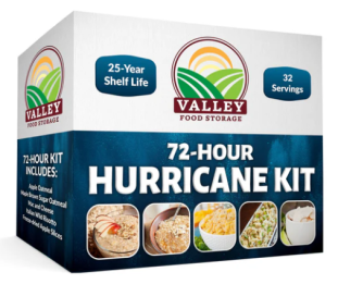 The Valley Food Storage 72-Hour Hurricane Emergency Food Kit provides you with 1,800 calories per day for 3 days. Whether you're evacuating or sheltering during hurricane season you'll be supplied with great-tasting and ready-made food you can count on with this 72-hour hurricane food kit, where quality always comes first.