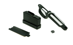 The kit includes the Bottom Metal Body, Tensioner, 4-Round Capacity Magazine for Standard Cartridge 2.850" OAL or 3-Round Capacity Magazine for WSM/PRC Magnum Cartridge 2.85" OAL, Lever, and BDL floorplate/lid.