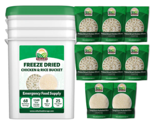 Chicken and rice dinner time staple that is now available to be stored long term with Valley Food Storage. With 6 bags of freeze-dried chicken, one of the most critical and hard-to-find foods for your emergency supply, and 2 bags of densely packed high-quality long-grain rice our chicken and rice bucket will become a staple in your food storage.