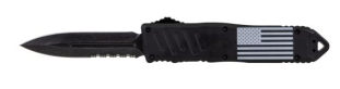 This Master Cutlery automatic knife is an excellent choice for everyday carry and versatile applications. Constructed with a robust zinc alloy handle and a stonewashed 3Cr13 steel blade, it measures 9 inches with a 3.5-inch double-sided, partially serrated spear point blade. A convenient carrying pouch is included.