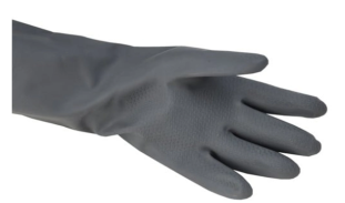 Medium weight, black neoprene. Withstands oils, acids, greases, solvents and caustics. Slip on and off easily. Non-slip hand area.