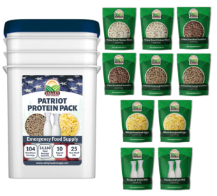 Introducing the Patriot Protein Pack from Valley Food Storage. Packed with 104 servings, 1,800 grams of protein, and 12,720 total calories, this bundle includes sausage crumbles, chicken dices, beef dices, powdered whole eggs, and fortified milk, ensuring you have the essential nutrients to stay nourished and resilient during any situation. Elevate your preparedness with this power-packed protein solution.