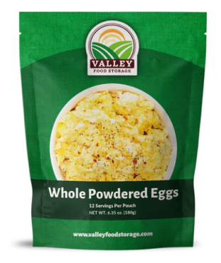 Valley Food StorageWhole Powdered Eggs are the best way to start the day with a hot breakfast, making it perfect for a quick and convenient breakfast or lunch for the whole family. Each pouch of whole powdered eggs contains 12 servings.